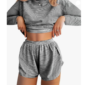 JUSTFASHIONNOW 女士条纹长袖短裤家居服,特价$9.99(原价$19.99),需要使用折扣码 7NDUGLA7 结账。